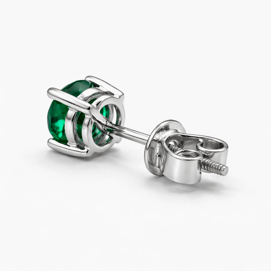 Aurora Signature Emerald Solitaire Stud Earrings – 6.5 mm | 925 Sterling Silver